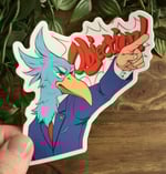 A sticker of Sunraku from Shangri-La Frontier as Pheonix Wright from Ace Attorney. They share the same Eng VA.