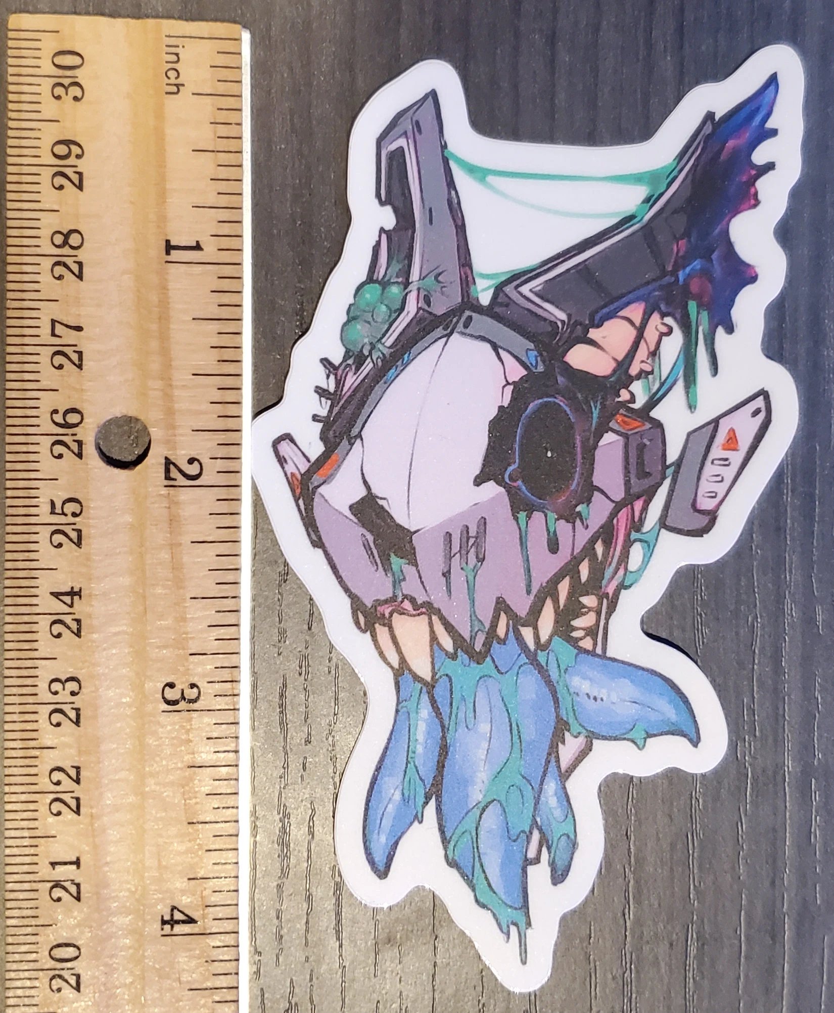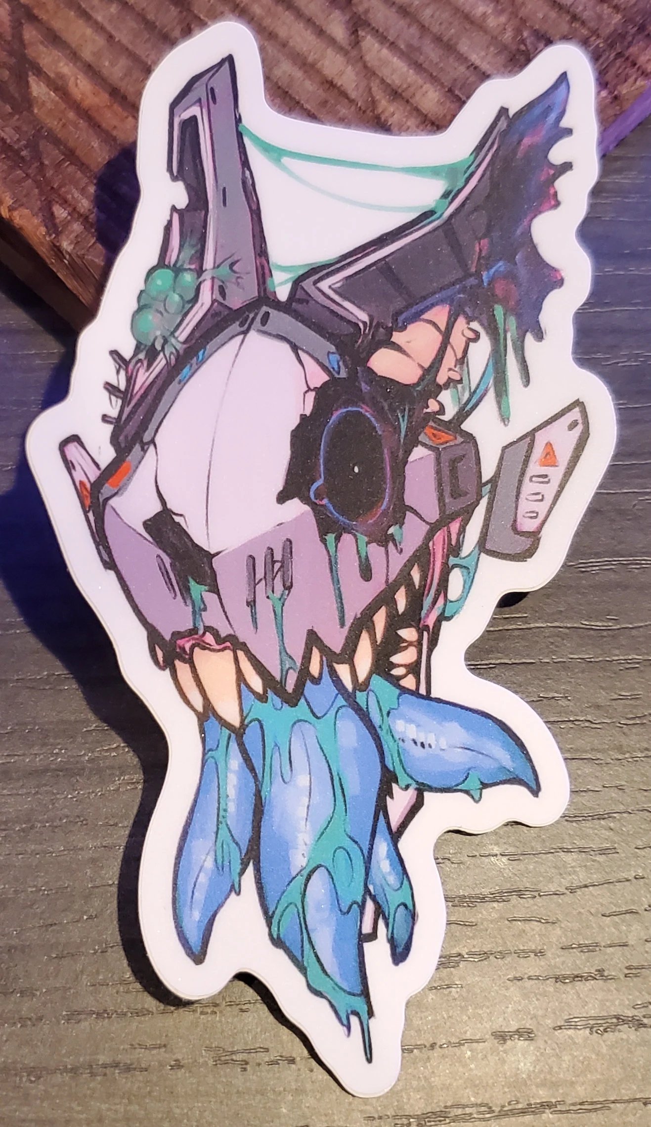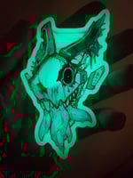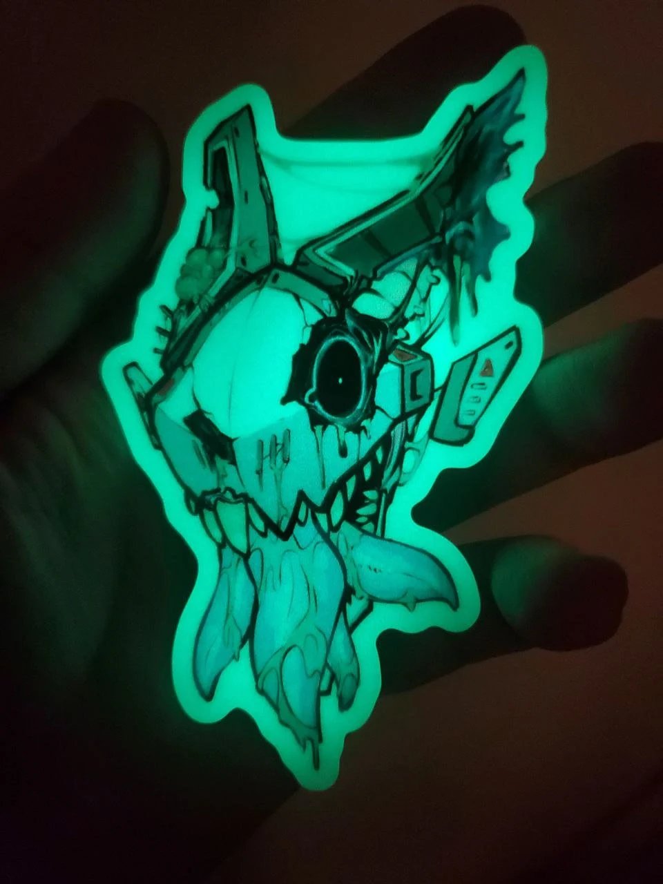 Small die-cut sticker of my robo-dog-serpent character, VST, in a spooky horror-style vibe. Available in plain and Glow-in-the-Dark versions!